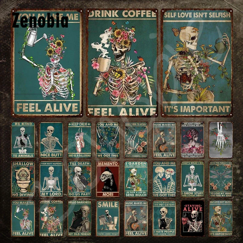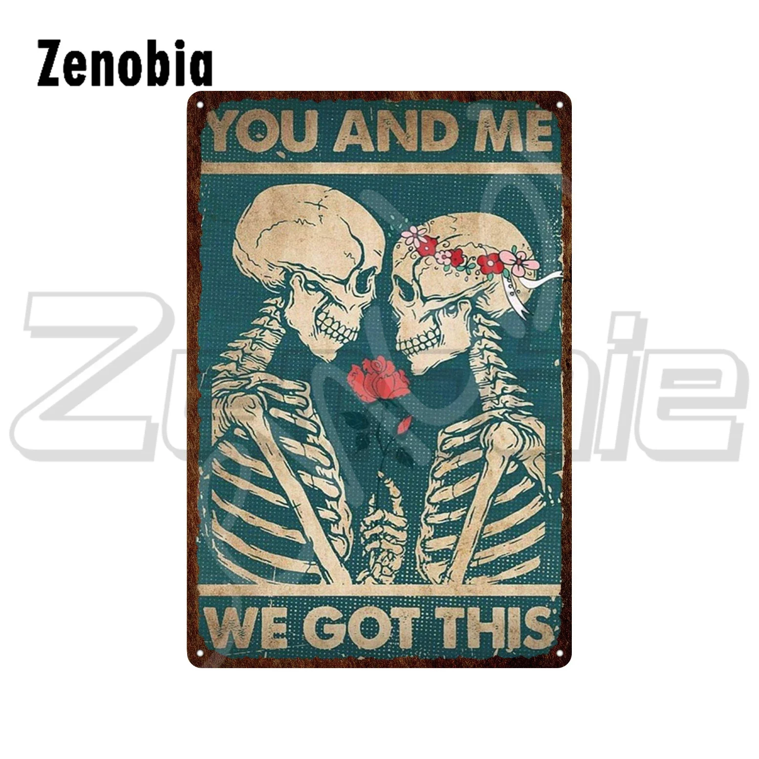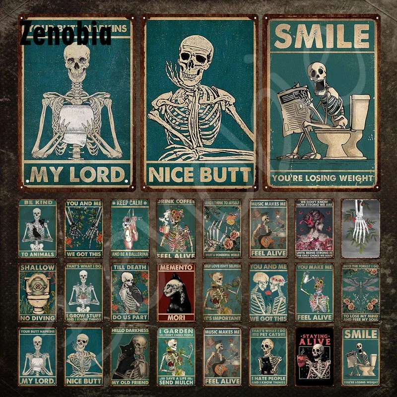 Skull Tin Metal Sign